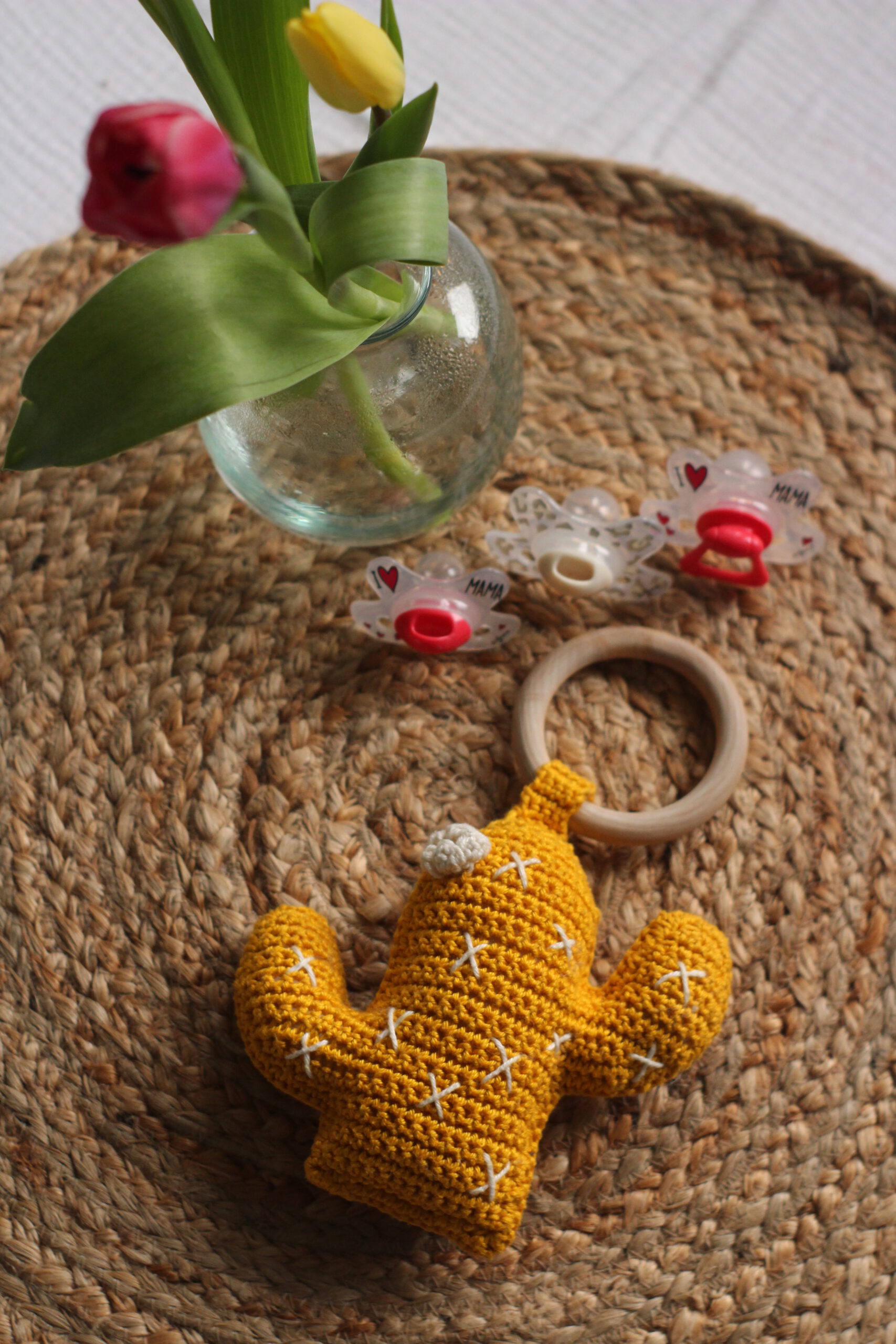 Het mutsje houdt het hoofdje lekker warm en is zacht voor de gevoelige babyhuid. De gehaakte rammelaar is ideaal voor kleine handjes om vast te houden en stimuleert de zintuigen van de baby met een vrolijk rammelend geluid.